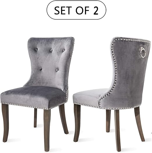 Amazon Com Juego De 2 Sillas De Comedor Victorianas Con Botones Sin Brazos Tapizadas Con Adorno Para La Cabeza De Las Unas Para Silla Terciopelo Gris Kitchen Dining
