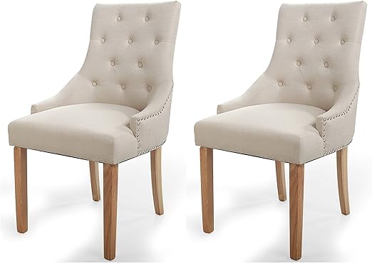 Amazon Com Juego De 2 Elegantes Sillas De Comedor Tapizadas De Tela Con Ribete De Color Beige Kitchen Dining