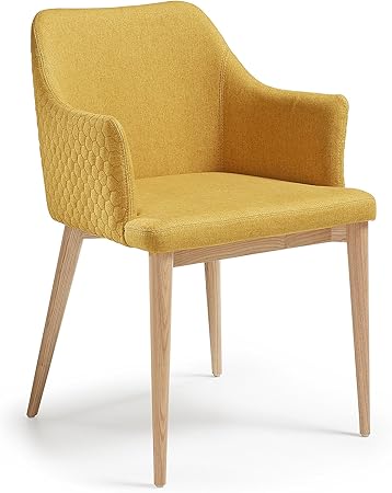 Kave Home Silla De Comedor Croft Con Brazos Tapizada En Amarillo Mostaza Y Patas De Madera Maciza De Fresno Natural Amazon Es Hogar