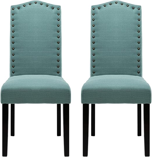 Amazon Com Nobpeint Juego De Sillas De Comedor Tapizadas Con Adornos De Cabeza De Clavos De Cobre Respaldo Arqueado Sin Brazos Verde Kitchen Dining