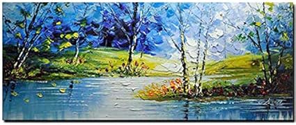 ZFDYH Peinture à l'huile Abstraite rivière forêt Paysage Toile Peinture à l' huile Bleu Arbre Photo Salon Chambre décoration Murale: Amazon.fr: Sports  et Loisirs